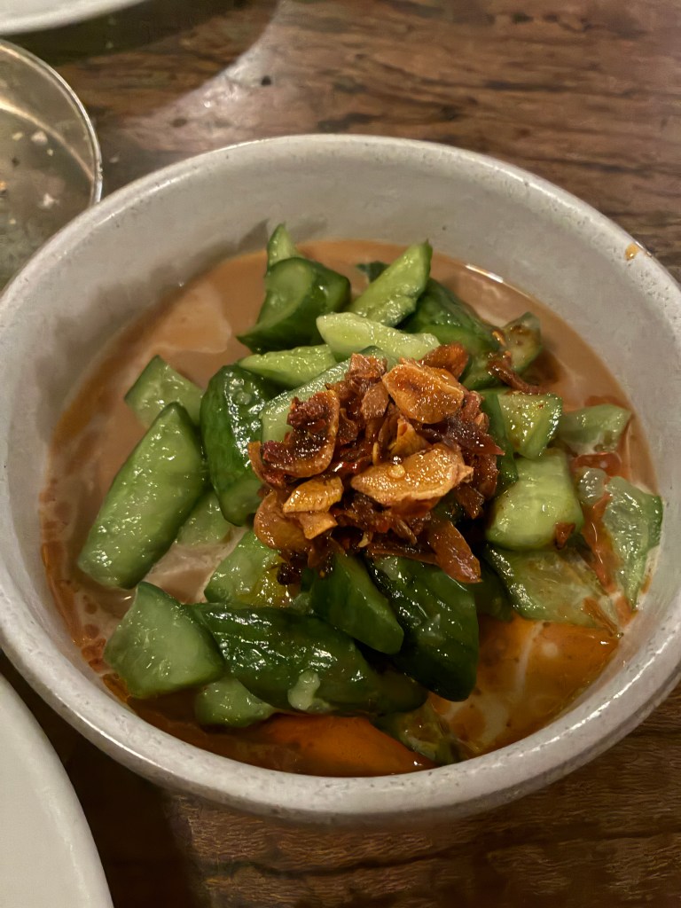 We enjoyed the PICKLE PLATE – which included pickled mushrooms, LAFFA BREAD, HUMMUS with burnt butter and pine nuts, SMACKED CUCUMBERS, TAHINI & CHILI CRUNCH – which our server recommended after we asked him what his favorite dish on the menu is (we do this everywhere we go cause who knows better than the people who work there, right?), and a few more plates. Everything tasted amazing especially accompanied with the wine we ordered.
