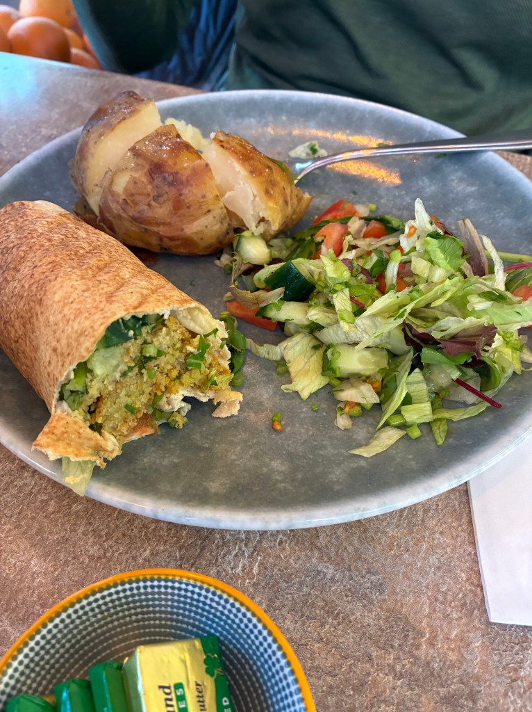 We split the FALAFEL WRAP – it had a nice red pepper flake kick to it – and the JACKET POTATO – a UK classic. Located on a quiet side street away from the crowds shopping two blocks away, enjoy yourself at this local neighborhood favorite.