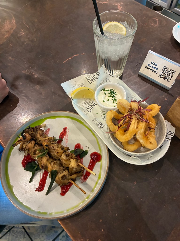 Ruthie had the soup of the day – a zucchini blended something – and it came with homemade croutons on the side and not already in it which is big points in all our books.