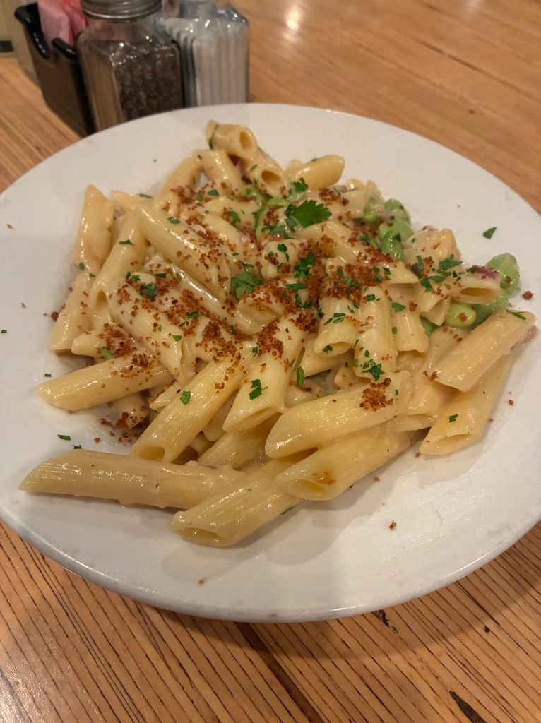 - Mac ‘n Cheese – which was delicious although a penne noodle not a macaroni noodle and if I’m being 100% honest here was more like a cream sauce pasta dish than a classic mac ‘n cheese – but still DELICIOUS;