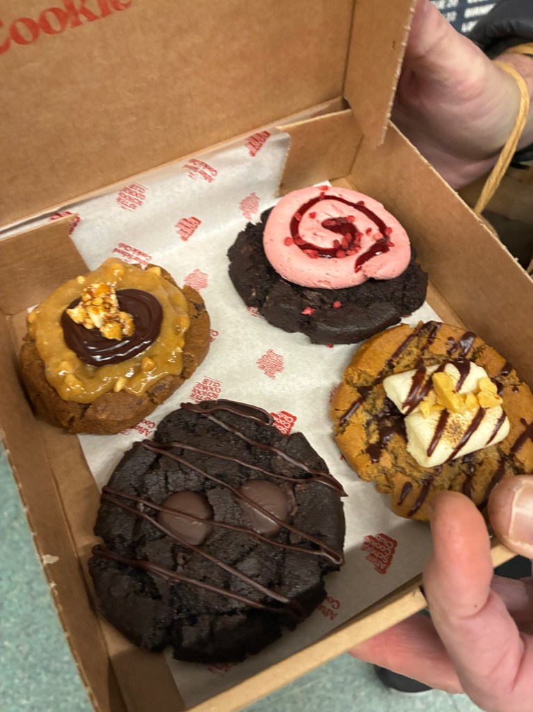 We were heading out of Coal Drop Yards toward Kings Cross and there it was like a beacon in the night (even though it was middle of the afternoon) drawing us to it. Walked up to see display with green leaf on first cookie, then second, then third… The woman behind the counter utters the best sentence ever, “ALL our items are vegan.” Did we mention they have shakes, too? They have shakes, too. There. We mentioned it. Did we also mention they take 20% off if you buy 4 or more? Go get you some cookies. Chomp chomp chomp.