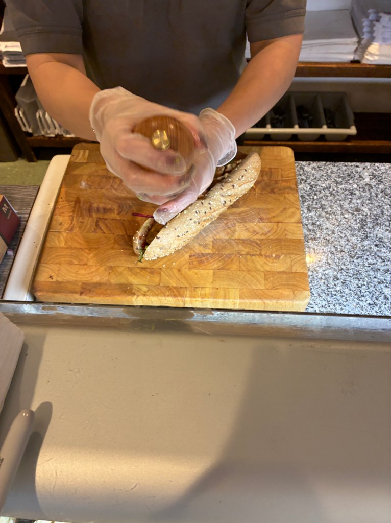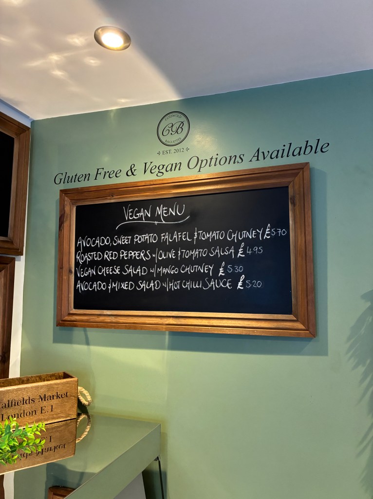 Tucked away on a side street in Stow-on-the-Wold you’ll find Cotswold Baguettes, a step-in, order-at-the-counter, breakfast and lunch deli (as we call them back in the U.S.). Opened in 2012, this tasty little spot offers vegans their own lunch board or you can opt to build your own sammy. There are plenty of options for your omnivore friends & fam joining you.