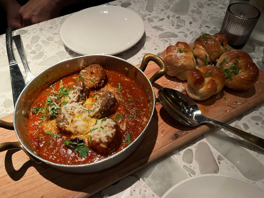Spaghetti Carbonara was insane – couldn’t even tell it wasn’t full-on cream-based with pancetta, it’s spot on and amazing. I will say it’s not a giant portion of pasta so if you come hungry (and you don’t have two glasses of wine, bread and meatballs first), get a starter or salad first. Just bein’ honest.