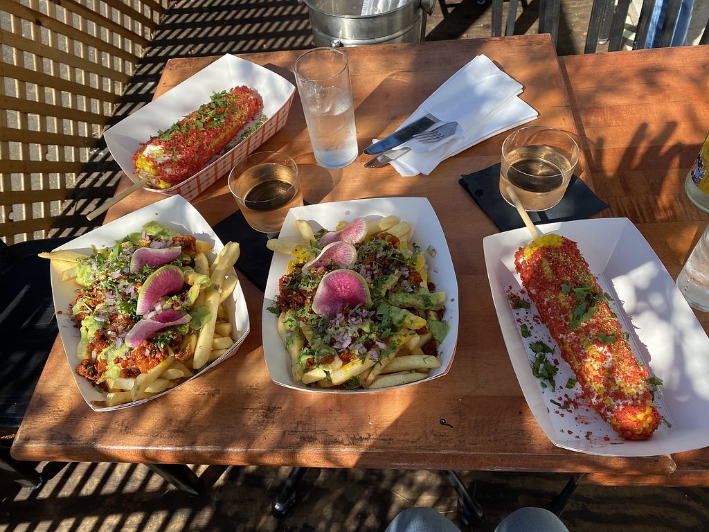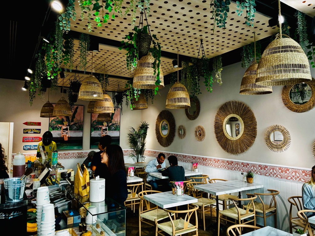 Palm Springs – it’s a small space where you can order area and shop but they have a seating area two doors down or do what we do and order it to go online, pick it up, bring it home and eat then jump back in the pool.